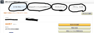 上部 ”注文後の商品について” ”AmazonデバイスとKindle版アプリ” ”デジタルサービス”