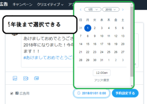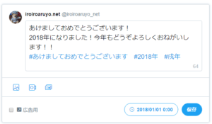 これだと、Twitterのサーバーに異変が起きない限り1月1日の0時0分に投稿出来ますし。