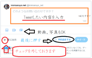 最後に、左下の「広告用」のチェックを外します。そして、「予約投稿する」をクリック。