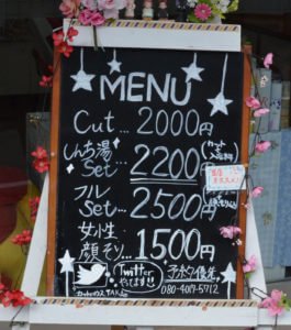 | フルセット (シャンプー・かみそり込み) | 2,500円 |